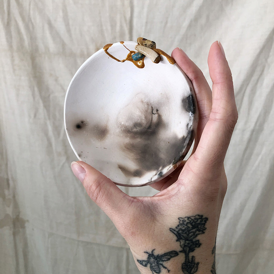 My love of nature and desire to live a more sustainable life has certainly influenced my ceramic process. I collect organic remnants from the world around me to create magical, unrepeatable surfaces on each piece.