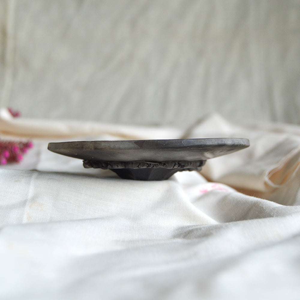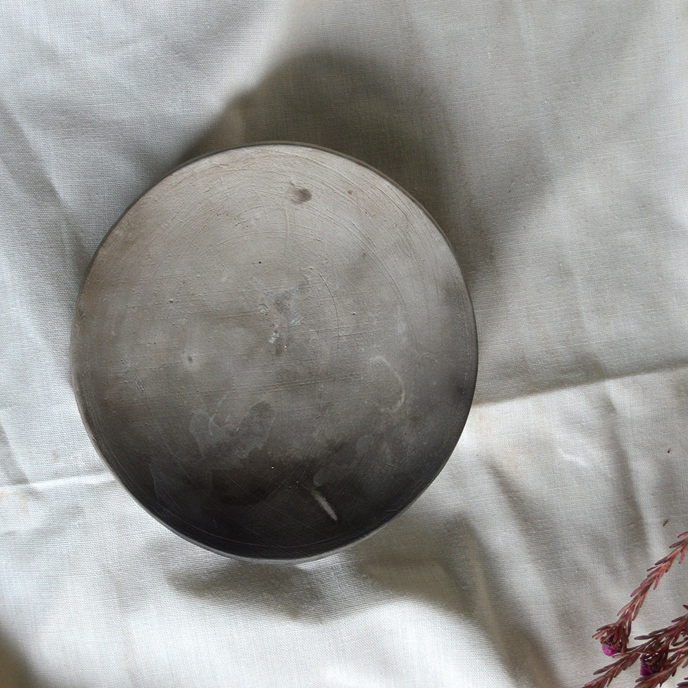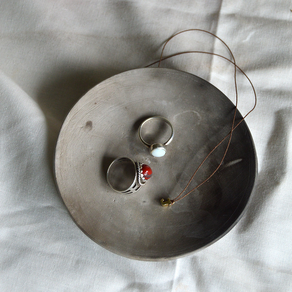 These small Callisto trinket dishes are individually wrapped up with natural elements and pit fired to leave carbon impressions in the clay.