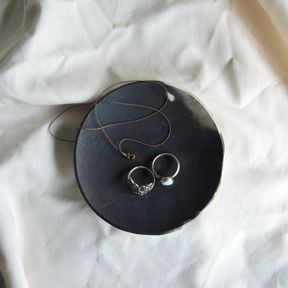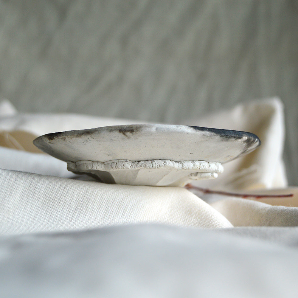 These small Callisto trinket dishes are individually wrapped up with natural elements and pit fired to leave carbon impressions in the clay.