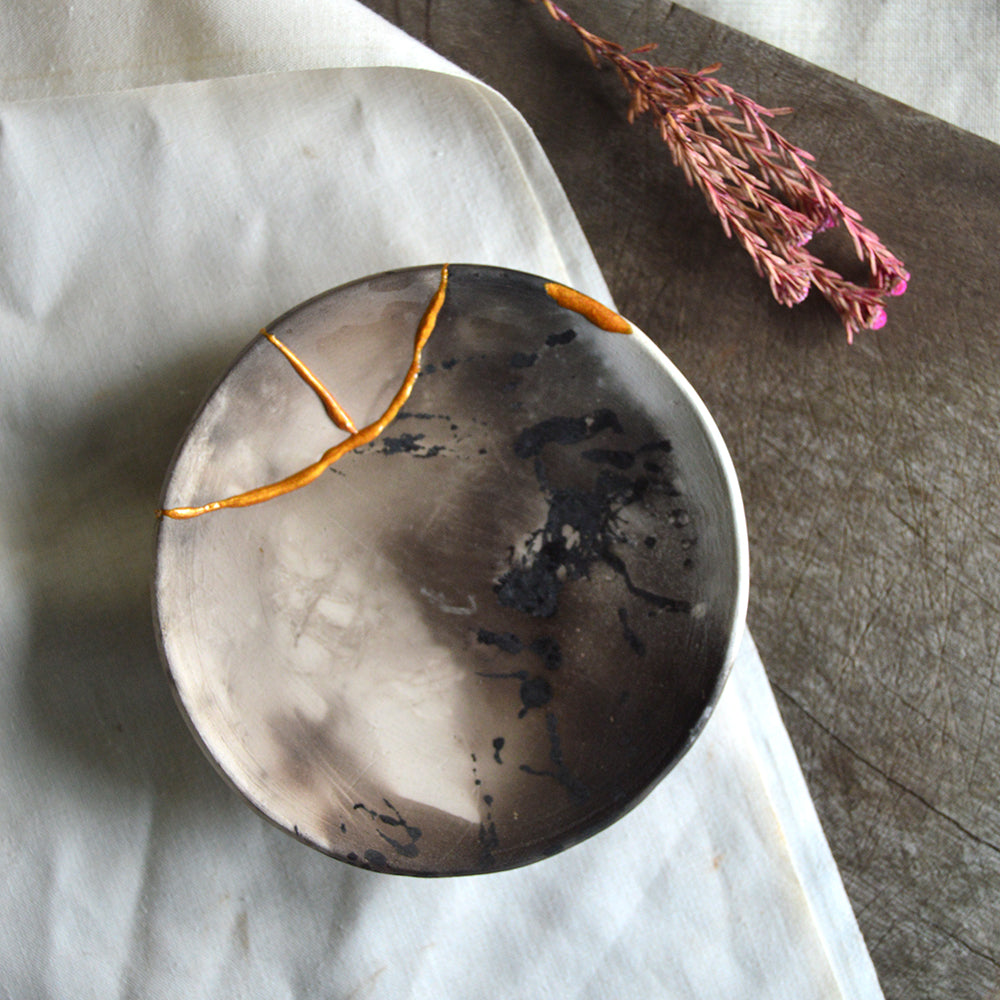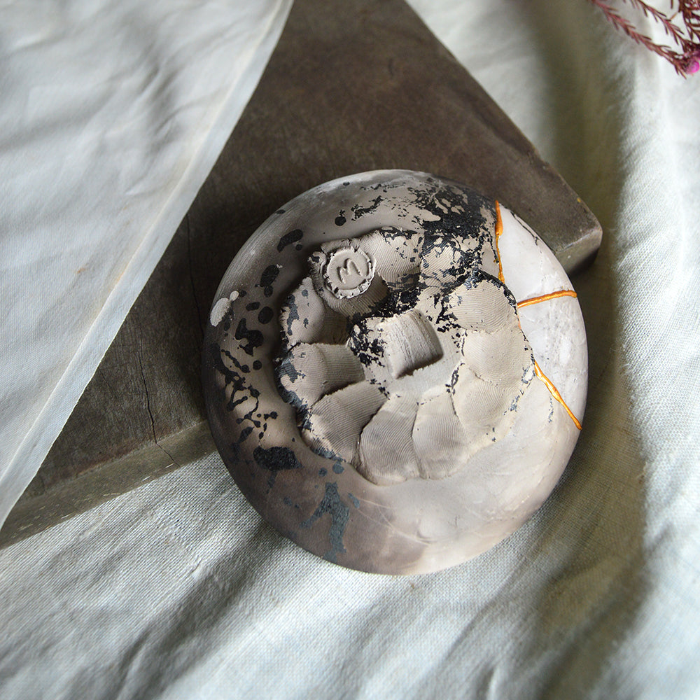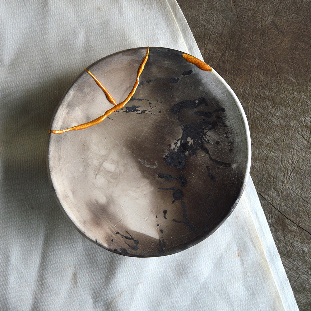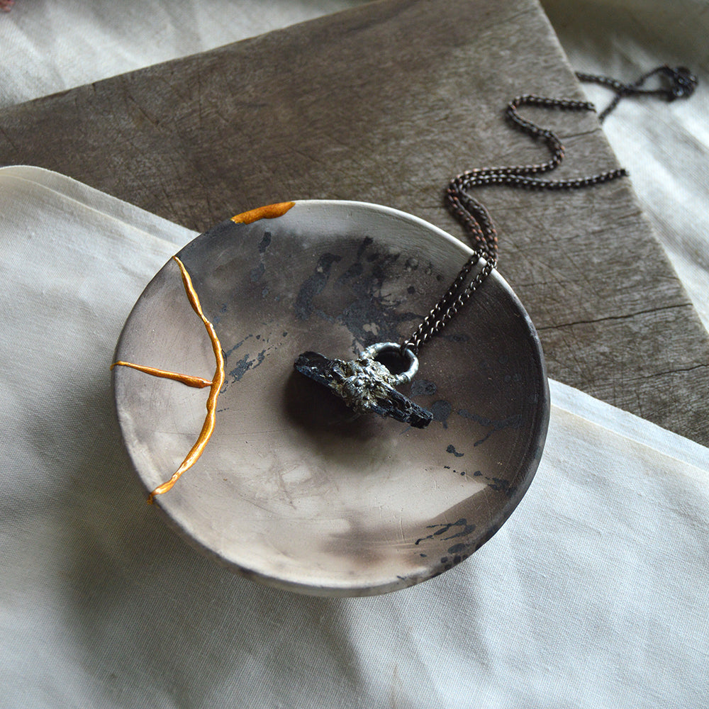 These small Callisto trinket dishes are individually wrapped up with natural elements and pit fired to leave carbon impressions in the clay.